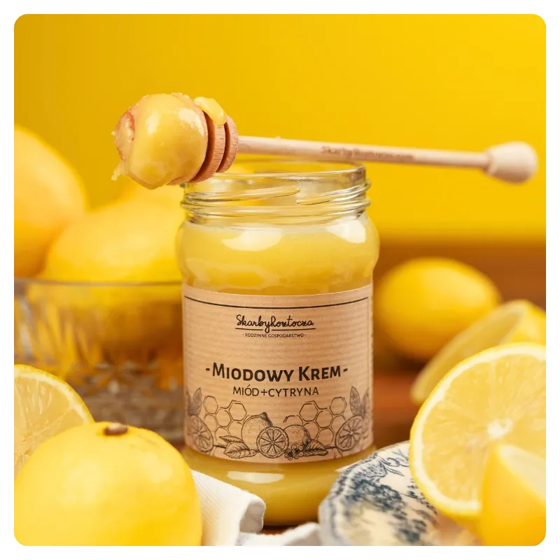Unikalny smak: Miód z cytryną charakteryzuje się niepowtarzalnym smakiem, który łączy słodycz miodu z kwaskowymi nutami popularnej cytryny. To połączenie tworzy wyjątkową kompozycję smakową, która może wzbogacić różnorodność potraw i napojów.
