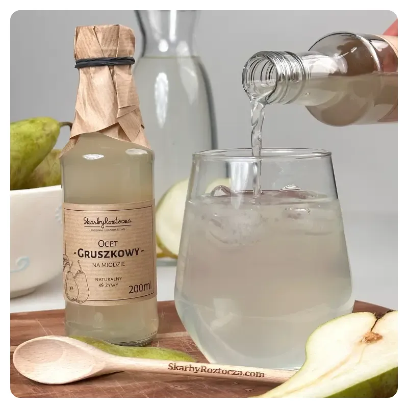 Proces fermentacji na miodzie wzmacnia właściwości zdrowotne octu, zachowując naturalne enzymy i kwasy organiczne, które korzystnie wpływają na funkcjonowanie układu moczowego. Ocet gruszkowy wspomaga pracę nerek, ułatwiając usuwanie toksyn oraz nadmiaru wody z organizmu, co może przyczyniać się do regulacji ciśnienia krwi. Jego łagodne działanie detoksykujące i oczyszczające wspiera równowagę organizmu, szczególnie przy dłuższym stosowaniu.