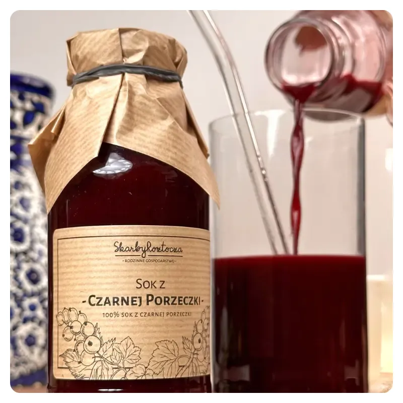 Pamiętajmy, że choć sok z czarnej porzeczki jest bardzo zdrowy to warto pamiętać, że należy spożywać go z umiarem - jak każdy produkt spożywczy. Rekomendowana dawka dla dorosłego to 1 szklanka dziennie, a dla dziecka rekomendowana jest połowa porcji dorosłego. Nasze soki nie są dosładzane, ani rozwadniane i ich smak może być dla niektórych za intensywny, dlatego swobodnie można je mieszać z wodą. Nadmierne spożywanie soku z czarnej porzeczki może prowadzić do problemów żołądkowych ze względu na wysoką zawartość kwasów organicznych oraz witaminy C.